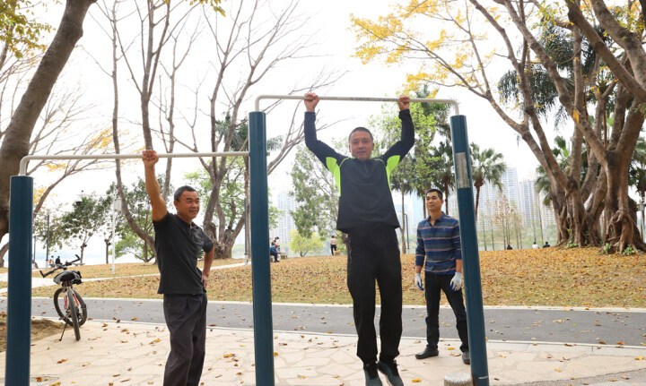 除了江北,一江之隔的橋東也同樣“風(fēng)景甚好”。每天下午,市民劉務(wù)奇都會(huì)約上自己的創(chuàng)業(yè)伙伴,到東江沙公園練習(xí)單杠。“我們從外地來惠州創(chuàng)業(yè),搞好事業(yè)的同時(shí),也不忘要強(qiáng)健體魄!眲(wù)奇說,東江沙公園是廣大市民“家門口的福利”,如此完備齊全的健身器材,讓他倍感貼心。