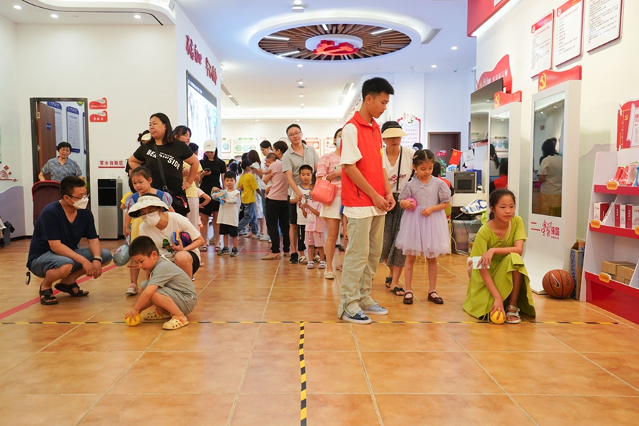 顛球障礙賽、雙人跳繩、抖抖球大作戰(zhàn)……5月28日上午,在江南社區(qū)新時(shí)代文明實(shí)踐站,“童心向黨,快樂成長”羅陽街道江南社區(qū)迎“六一”游園活動舉行,F(xiàn)場,23項(xiàng)豐富多彩的活動讓家長與孩子們共度了一段愉快的親子時(shí)光!白詮纳鐓^(qū)有了新時(shí)代文明實(shí)踐站,就經(jīng)常開展各種文明實(shí)踐活動。很有意思也很有意義,孩子經(jīng)常吵著要參加!痹鴭寢屝χf。