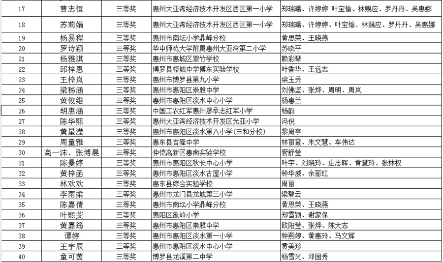 中小學(xué)生演講比賽獲獎名單