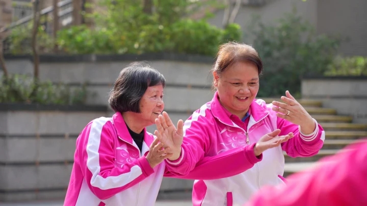 收到隊(duì)員們的贊譽(yù),楊珍濃表示,獨(dú)樂樂不如眾樂樂,通過教鄰里們學(xué)習(xí)太極,她也認(rèn)識到了一群“好姐們”,大家每天一起打太極拳,鍛煉身體,還互相交流各種養(yǎng)生保健常識,參加小區(qū)各類晚會的演出,收獲了很多快樂。