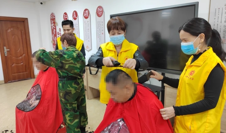志愿者為康園中心殘疾朋友們理發(fā)。
