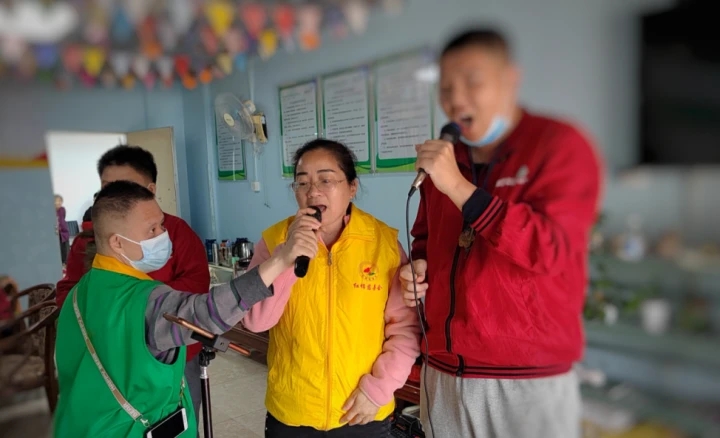 志愿者們與康園中心殘疾朋友們一起唱歌、跳舞。