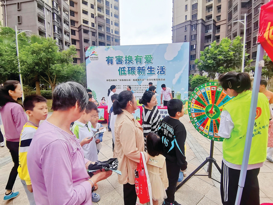 許多居民被現場熱鬧的氛圍所吸引,主動詢問志愿者如何參與舊物置換活動,隨后,居民將家中符合條件的廢舊物品帶到現場進行置換。在工作人員的指引下,居民將廢舊物做好登記,擺放到指定地點,有序領取兌換物品。拿到兌換品的張女士說:“這個活動不僅增強了居民們低碳環(huán)保、節(jié)約節(jié)能的生活理念,還賦予了舊物利用價值,簡直是一舉兩得!”