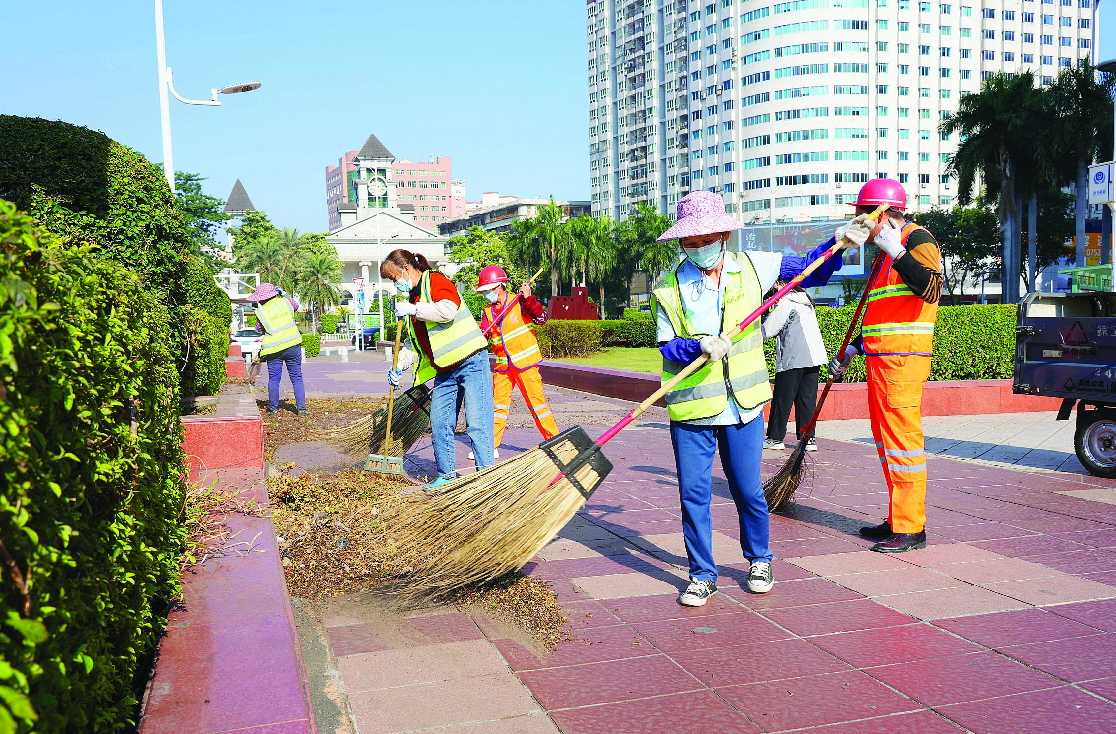 11月22日上午9時,在市區(qū)花邊嶺廣場,環(huán)衛(wèi)工人和園林工人攜手合作,熱火朝天地清理綠化帶內(nèi)的垃圾。園林工人使用背式鼓風(fēng)機吹出綠化帶中的落葉,環(huán)衛(wèi)工人隨即進(jìn)行清掃!拔覀冞@次清理綠化帶的落葉及垃圾,正是希望提升城市的宜居性和生態(tài)環(huán)境品質(zhì)!笔惺腥莪h(huán)境衛(wèi)生事務(wù)中心質(zhì)檢大隊隊長張智敏告訴記者,整治工作將按時有序地覆蓋城區(qū)主干道所有的綠化帶。