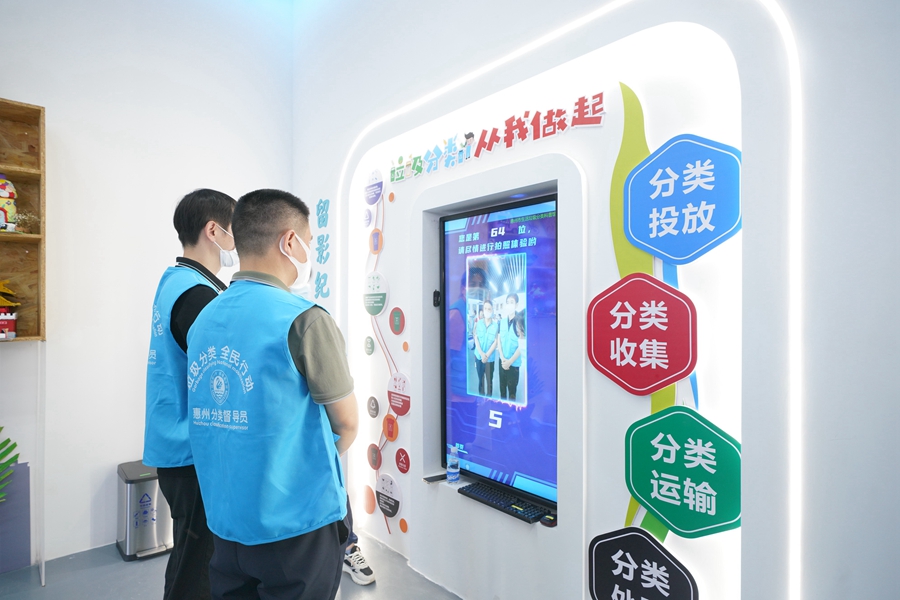 市民在市生活垃圾分類(lèi)科普館參觀(guān)體驗(yàn)。