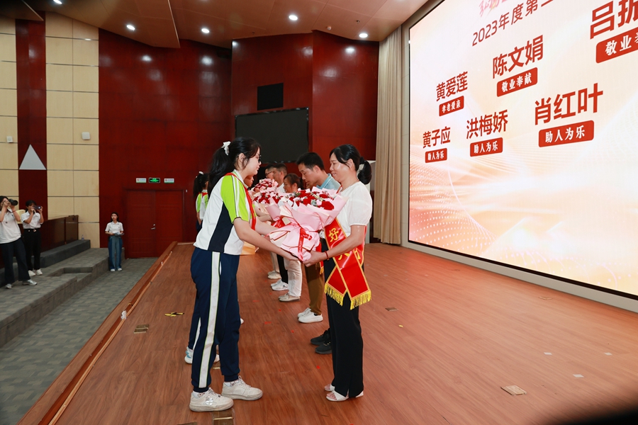 訪談環(huán)節(jié)過后,曾在“仲愷星火”比武大賽中獲得一等獎的志愿者祁瑞梅,為大家?guī)怼爸賽鹦腔稹毙v——《生命不息,行善不止》;顒舆為2023年第一至第四季度“仲愷好人”獻(xiàn)花。