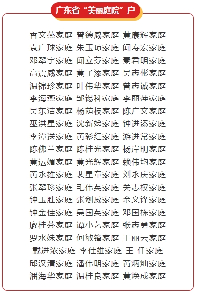 惠州日報訊 (記者馬海菊 通訊員李曉君)近日,省婦聯(lián)、省農(nóng)業(yè)農(nóng)村廳發(fā)布了《關(guān)于認定廣東省“美麗庭院”戶、“美麗庭院”典型戶、“美麗庭院”村的通報》,我市共有60戶家庭被認定為省“美麗庭院”戶,3戶家庭被認定為省“美麗庭院”典型戶,3個村(社區(qū))被認定為省“美麗庭院”村。