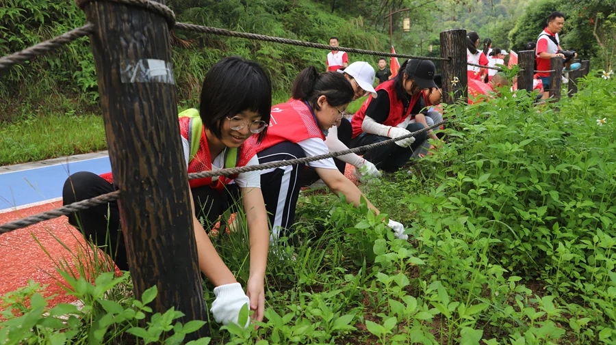 惠州志愿者在清除有害雜草。