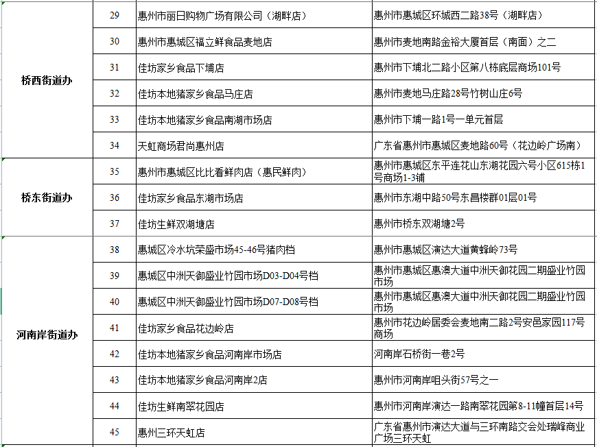 據(jù)介紹,50個(gè)調(diào)控點(diǎn)分別由市肉聯(lián)廠有限公司、佳坊農(nóng)產(chǎn)品有限公司、麗日購物廣場、天虹商場、匯綠鮮果蔬農(nóng)民專業(yè)合作社等企業(yè)承擔(dān)政府調(diào)控豬肉具體銷售工作。屆時(shí),各調(diào)控點(diǎn)將會(huì)在適當(dāng)位置懸掛“2023年春節(jié)期間政府價(jià)格惠民豬肉調(diào)控點(diǎn)”橫幅以及張貼“政府價(jià)格惠民豬肉調(diào)控價(jià)目表”。