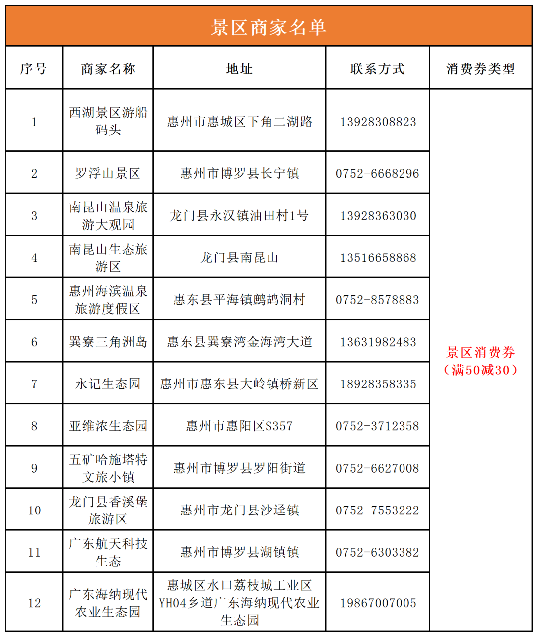 活動圍繞主題旅行、酒店民宿、景區(qū)商圈、文娛影院、惠州手信、體育場館等6個消費領域發(fā)放200萬元惠民消費券,數(shù)量高達6萬張,對市民的文旅體消費實行不少于40%的補貼比例,讓每位市民最高可享受120元的優(yōu)惠補貼。