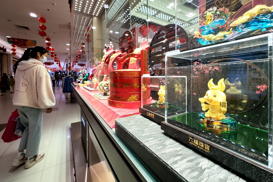 在各大黃金商店,新鮮出爐的兔年生肖飾品穩(wěn)穩(wěn)占據(jù)C位。 惠州日?qǐng)?bào)記者周楠 攝