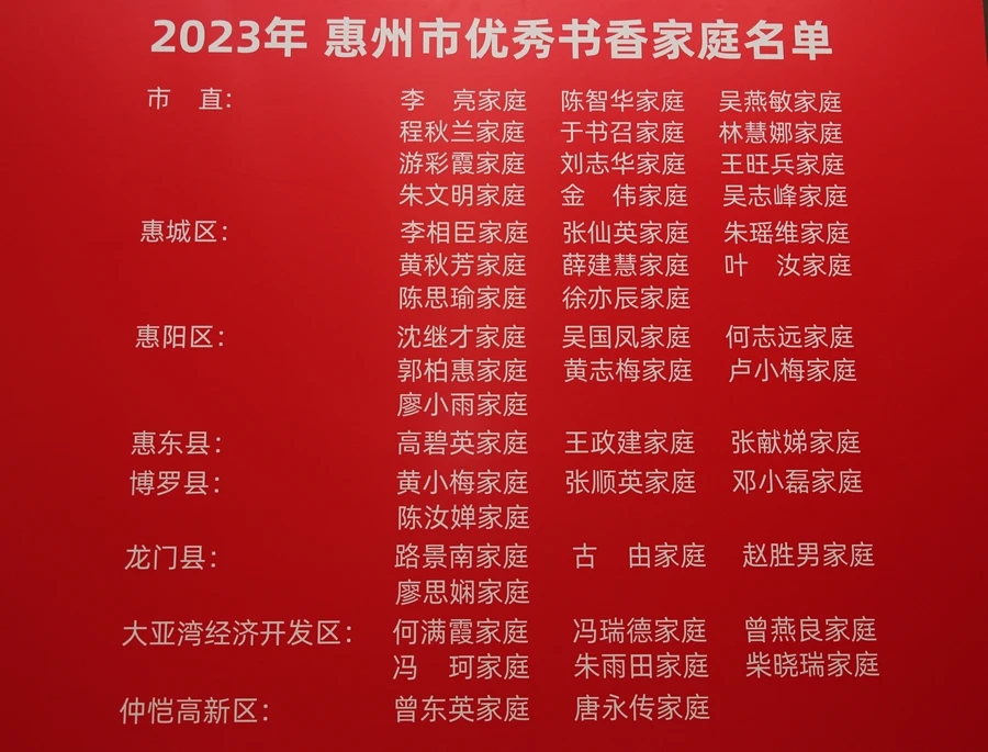 2023年惠州市“優(yōu)秀書香家庭”揭曉;葜萑?qǐng)?bào)記者鐘暢新 攝