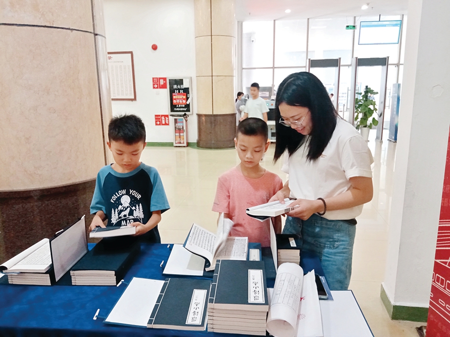 市民帶孩子閱讀古籍;葜萑?qǐng)?bào)記者龔妍 攝