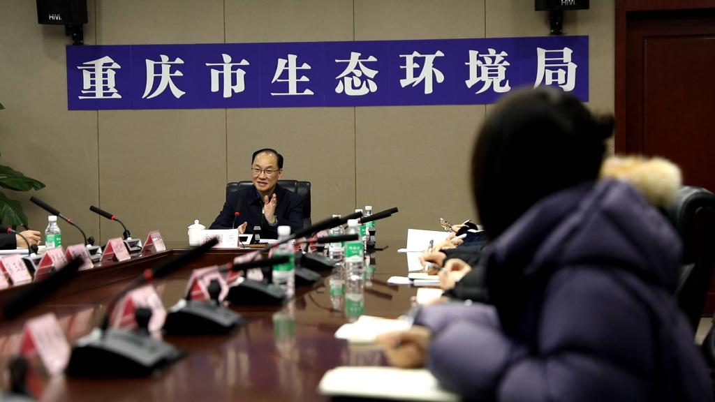 圖為余國東在重慶市生態(tài)環(huán)境局召開會議。新華社記者 李愛斌 攝