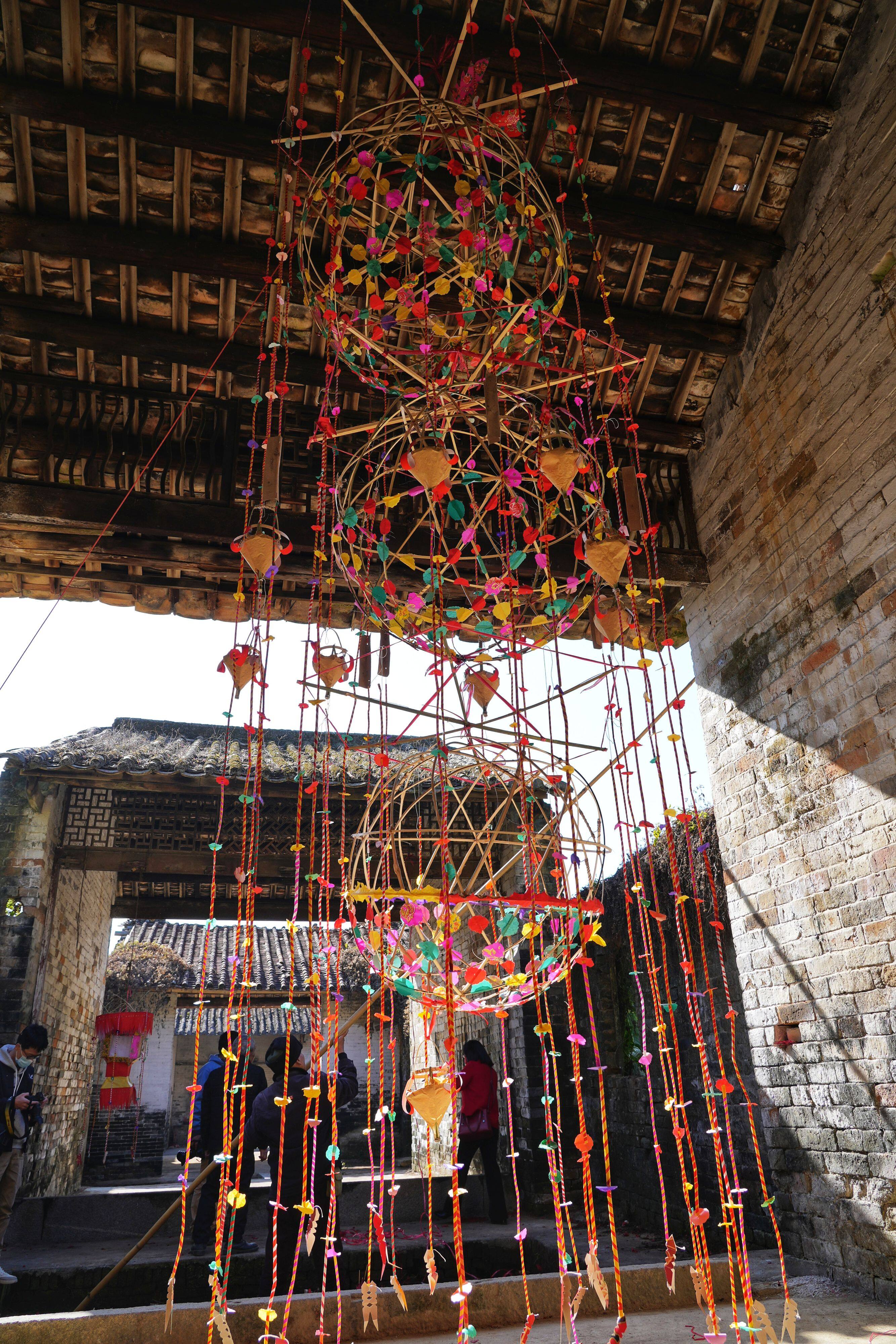 1月30日,農(nóng)歷大年初九,記者來到龍門縣永漢鎮(zhèn)鶴湖村虎頭村民小組,看到當(dāng)?shù)氐拇迕駛(gè)個(gè)忙忙碌碌,有的制作虎頭花燈,有的將虎頭花燈送到朱莊、大圍、松下嚇等各村小組的祠堂掛起來,準(zhǔn)備在今年元宵節(jié)上燈儀式所用的虎頭花燈。