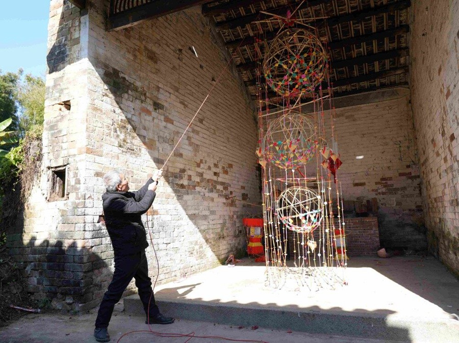 何廖福還告訴記者,他七歲開始跟爺爺學(xué)做花燈,虎頭花燈是以竹、紙為主要材料,它的制作過程主要包括扎架、剪紙、卷燈帶、裱糊、做燈斗與鳳雞等一個(gè)個(gè)組合成以三個(gè)大小不一的圓球體為主的虎頭花燈。