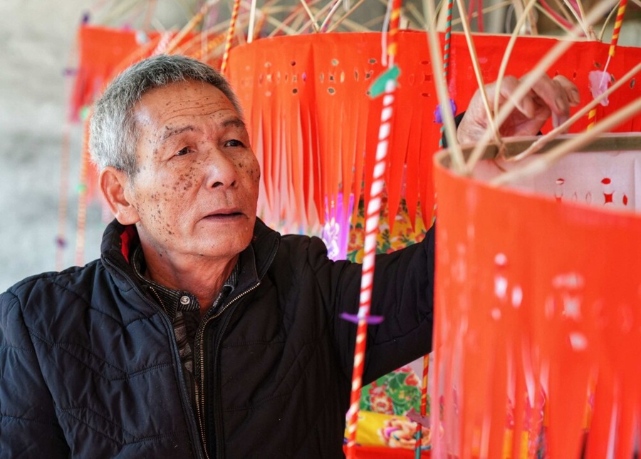 虎頭村民虎頭花燈非遺傳承人何廖福告訴記者,正月初三到正月十二是制作虎頭花燈的時(shí)間,每年都會(huì)有不少村民前來定做花燈,今年有十幾個(gè)村訂了13盞虎頭花燈,每盞1300元左右。