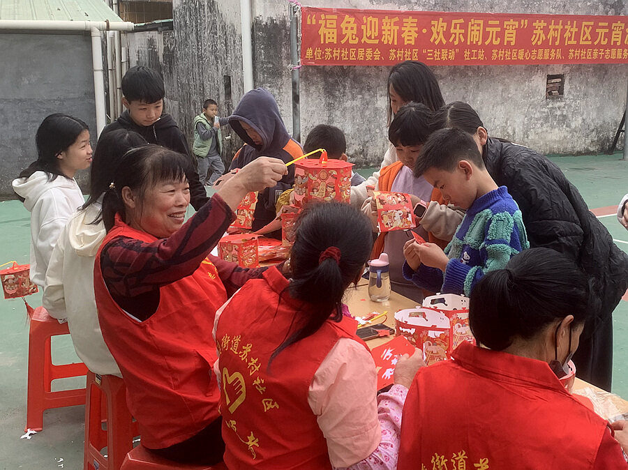 在元宵節(jié)來(lái)臨之際,為豐富社區(qū)居民的文化活動(dòng),增進(jìn)社區(qū)居民間的互動(dòng)交流,營(yíng)造歡樂(lè)、祥和的節(jié)日氣氛,2月1日上午,由博羅縣民政局購(gòu)買服務(wù)、惠州大亞灣區(qū)惠民社會(huì)服務(wù)發(fā)展中心承接運(yùn)營(yíng)的龍溪蘇村社區(qū)“三社聯(lián)動(dòng)”社工站,聯(lián)合蘇村社區(qū)居委會(huì)、蘇村社區(qū)暖心志愿服務(wù)隊(duì)、蘇村社區(qū)親子志愿服務(wù)隊(duì)和蘇村社區(qū)健身隊(duì)開(kāi)展“福兔迎新春,歡樂(lè)鬧元宵”游園暨慰問(wèn)活動(dòng)。