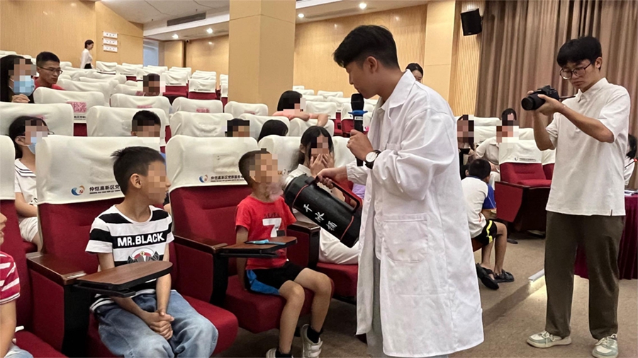 啟動(dòng)儀式結(jié)束后,還組織困境家庭代表開(kāi)展了科學(xué)奇幻秀、科學(xué)實(shí)驗(yàn)課等親子科普體驗(yàn)及反詐宣傳活動(dòng),讓家長(zhǎng)、孩子們既學(xué)習(xí)科學(xué)知識(shí),又提高了反詐反家暴防性侵意識(shí),增進(jìn)了親子間的情感交流。