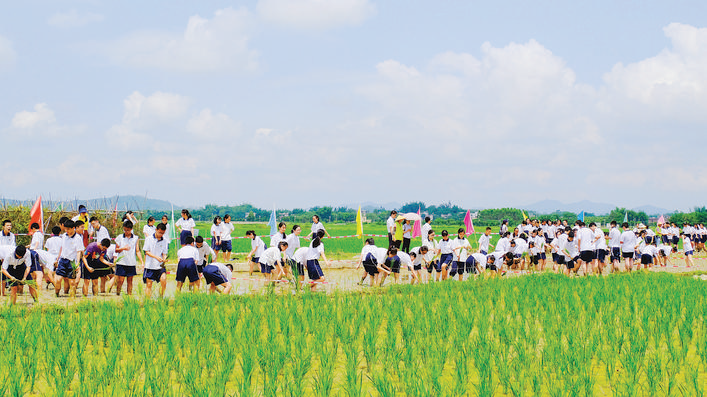 觀音閣鎮(zhèn)大力發(fā)展農(nóng)旅項目。這是學生體驗插秧。