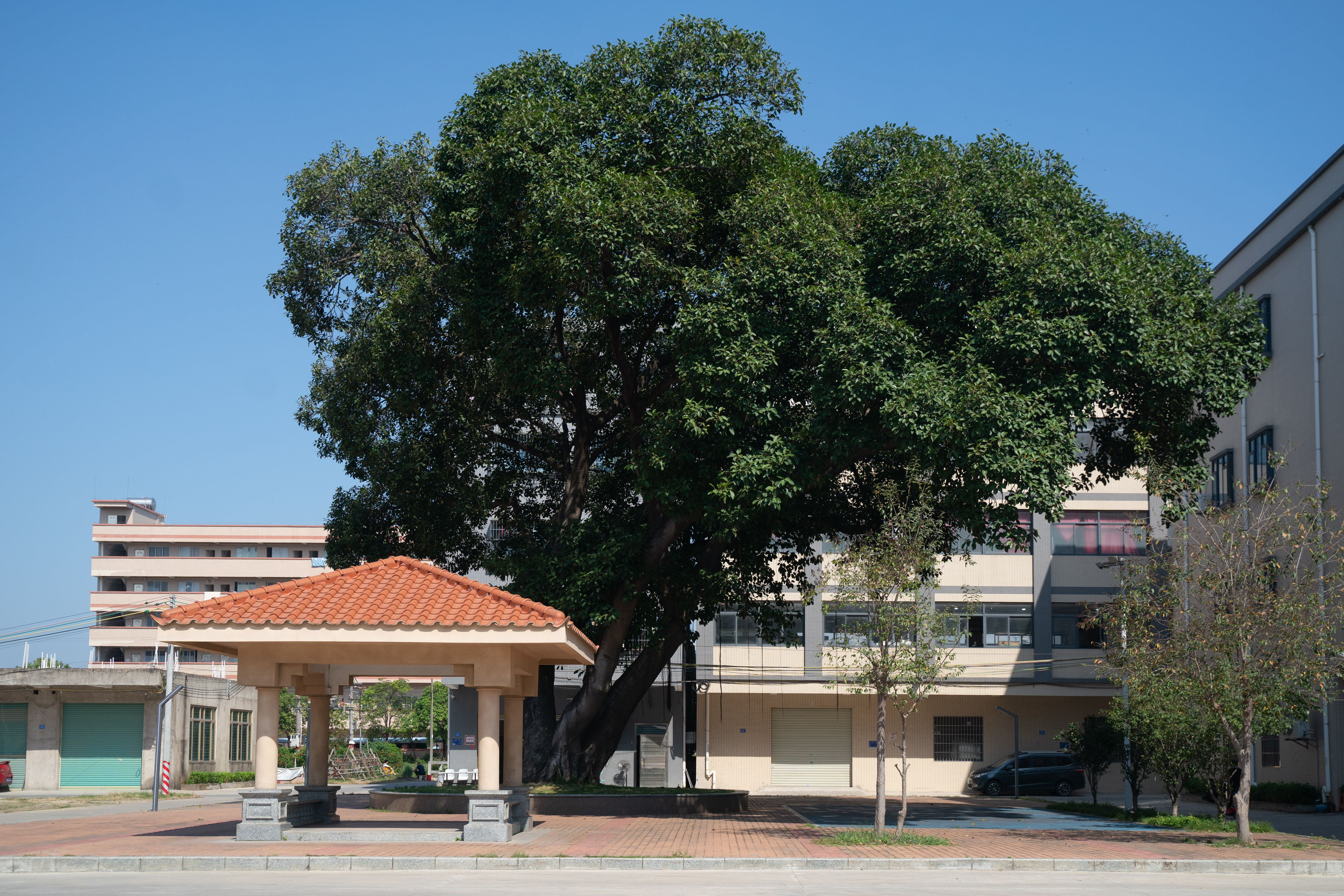 “在這里活動(dòng)很方便,每天都來(lái)鍛煉,強(qiáng)身健體!眻@洲鎮(zhèn)廖尾村村民蔡錦順介紹,茶余飯后,村民習(xí)慣聚集到榕樹頭公園,鍛煉身體、談天說(shuō)地,悠閑自在。榕樹頭公園,顧名思義,因?yàn)檫@里生長(zhǎng)著兩棵大大的古榕樹。歷經(jīng)歲月洗禮,古榕樹依然枝繁葉茂,見證著當(dāng)?shù)氐淖兓桶l(fā)展。