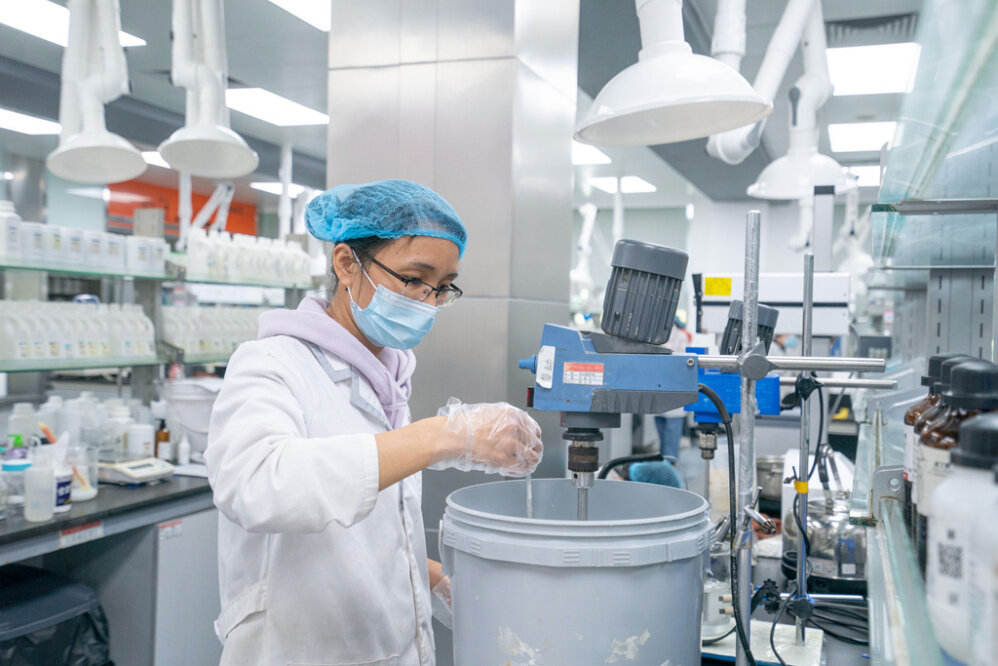 “目前,澳寶的水料配制日產能達500噸,單支灌裝日產能達80萬支,組裝日產能達30萬套!笔婢斜硎,在個護加工領域,像澳寶這樣年產值超10億元規(guī)模的工廠屈指可數。