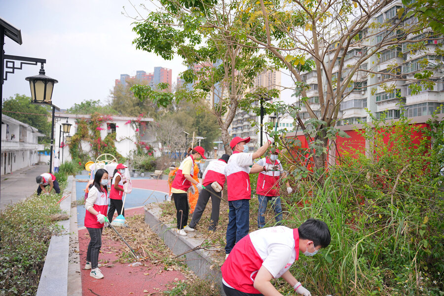 在3月17日舉辦的惠州市每月大掃除行動(dòng)啟動(dòng)儀式上,來(lái)自各級(jí)單位和部門(mén)的志愿者近百人齊聚惠城區(qū)江南街道辦事處園嶺社區(qū)石油宿舍小區(qū)廣場(chǎng),共同見(jiàn)證并參與此次行動(dòng)。在烈日下,他們有的拿起掃把清掃地面的落葉和垃圾,有的用手撿起綠化帶里的枯枝敗葉,有的拿起鏟子清理墻上的牛皮癬,有序分工,高效配合,讓“志愿紅”成為現(xiàn)場(chǎng)一抹靚色。現(xiàn)場(chǎng)還有工作人員負(fù)責(zé)垃圾清運(yùn)、環(huán)境消殺等工作。