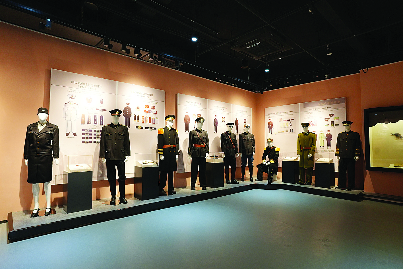 在二樓展廳內(nèi),最引人矚目的莫過于清末民國時期的警察服飾。1908年,清光緒帝頒布詔書統(tǒng)一警服和警銜,我國第一套警服出現(xiàn),這套清末警服帽徽上有盤龍,人們稱之為“盤龍祥云”。館里還展示著一套民國警用標(biāo)志,是當(dāng)時博物館工作人員歷時三年,從臺灣、浙江、福建三個地方收集而成,可以說是在國內(nèi)保存完整度非常高的一套警用標(biāo)志。