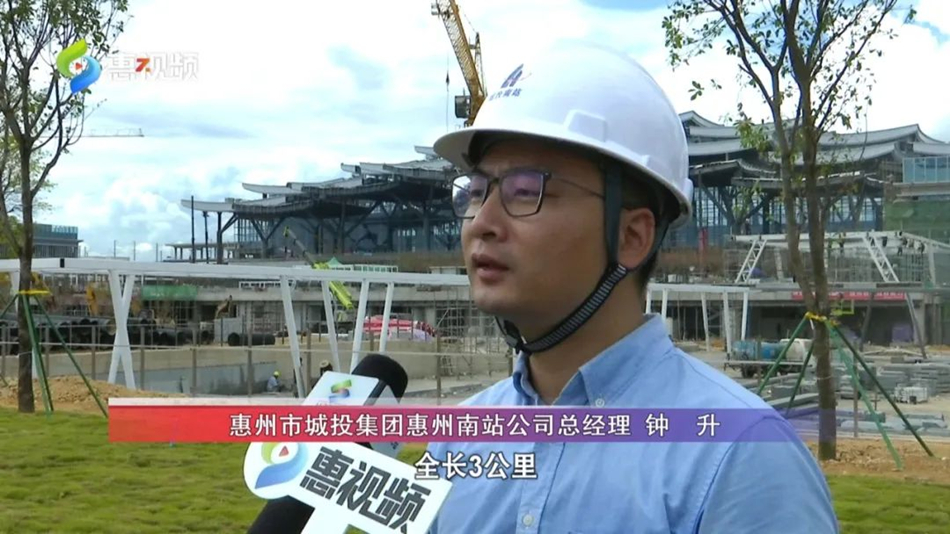 惠州市城投集團(tuán)南站公司總經(jīng)理鐘升介紹:“市政配套主要包括宏達(dá)路(西接演達(dá)大道,東接惠澳大道,全長3公里),還有進(jìn)出場站的站東、站西路,以及一條落客匝道。這個部分已經(jīng)完成95%了,剩余標(biāo)識標(biāo)牌的安裝!