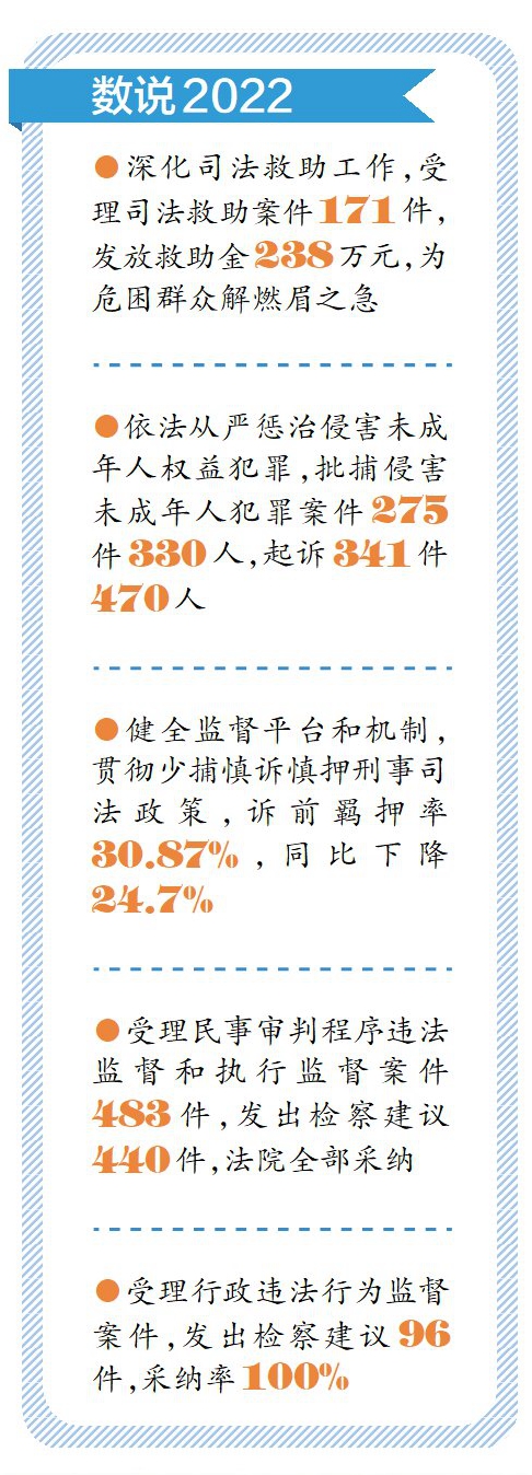 市檢察院與市婦聯(lián)會簽《關(guān)于開展困難婦女群體專項司法救助工作的意見》,形成救助合力。深化司法救助工作,受理司法救助案件171件,發(fā)放救助金238萬元,為危困群眾解燃眉之急。深入貫徹未成年人保護“兩法”,依法從嚴懲治侵害未成年人權(quán)益犯罪,批捕侵害未成年人犯罪案件275件330人,起訴341件470人;結(jié)合辦案推動強制報告制度、教職員工入職查詢制度落地落實;錄制法治云課堂,為全市中小學(xué)生送上“自護大禮包”;針對校園周邊商鋪售賣抽獎游戲玩具等亂象,迅速推動開展專項監(jiān)督檢查,凈化校園周邊環(huán)境;針對嚴重監(jiān)護失職,發(fā)出《督促監(jiān)護令》95份,有效促進家庭教育。