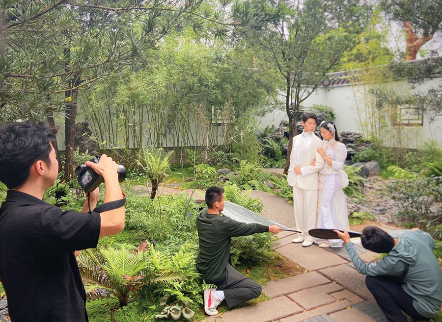 “這里場(chǎng)景豐富,北歐風(fēng)情、中式庭院、波希米亞風(fēng)格我都很喜歡,拍出意境!毙氯诵』壅f,最初他們想旅拍婚紗照,受疫情影響沒有實(shí)現(xiàn),“在家門口就能拍出旅拍婚紗照,省去舟車勞頓和經(jīng)濟(jì)成本,很不錯(cuò)。”