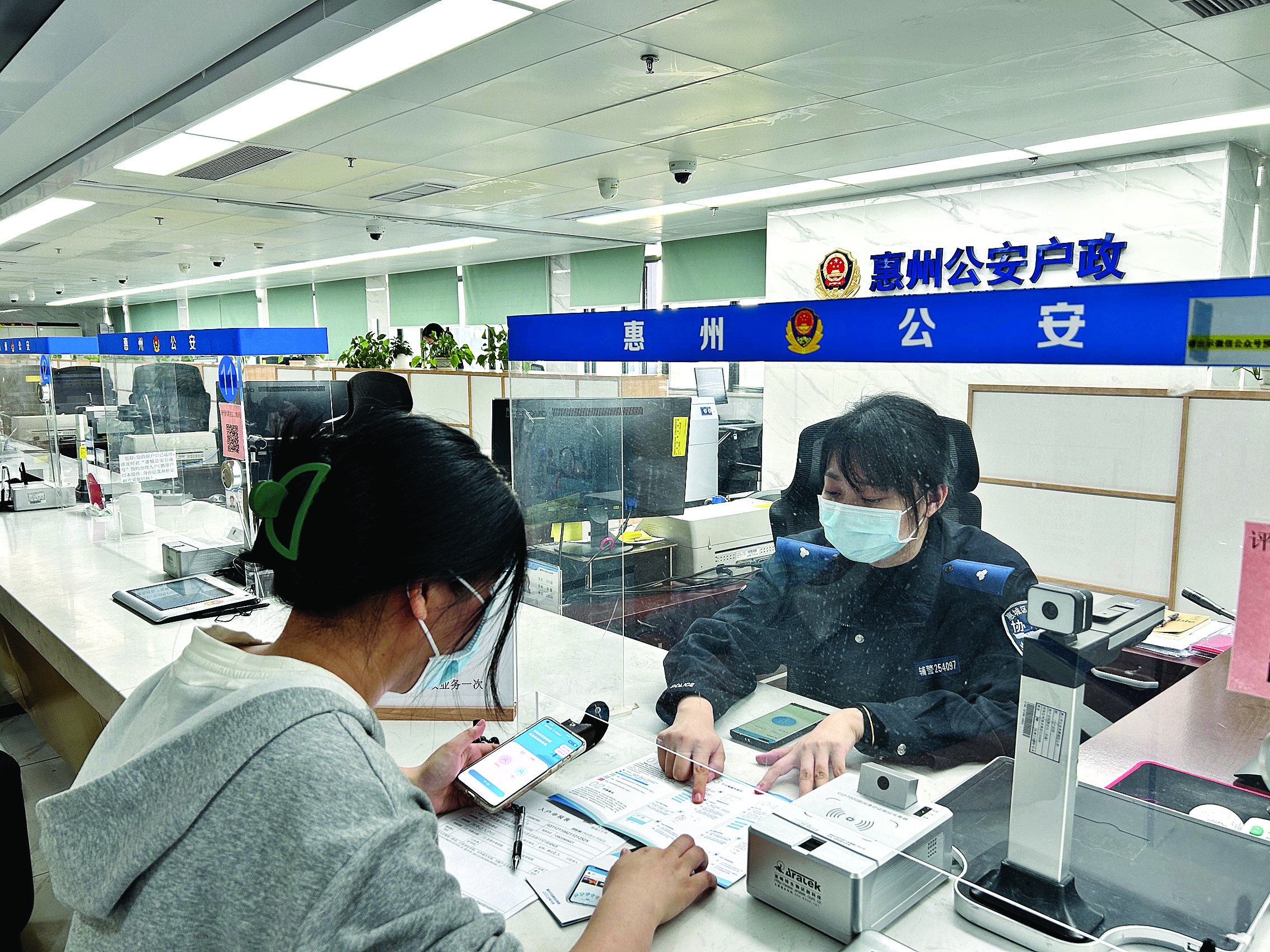 市民使用“惠信碼”綠碼在公安服務(wù)窗口快速辦理業(yè)務(wù)。