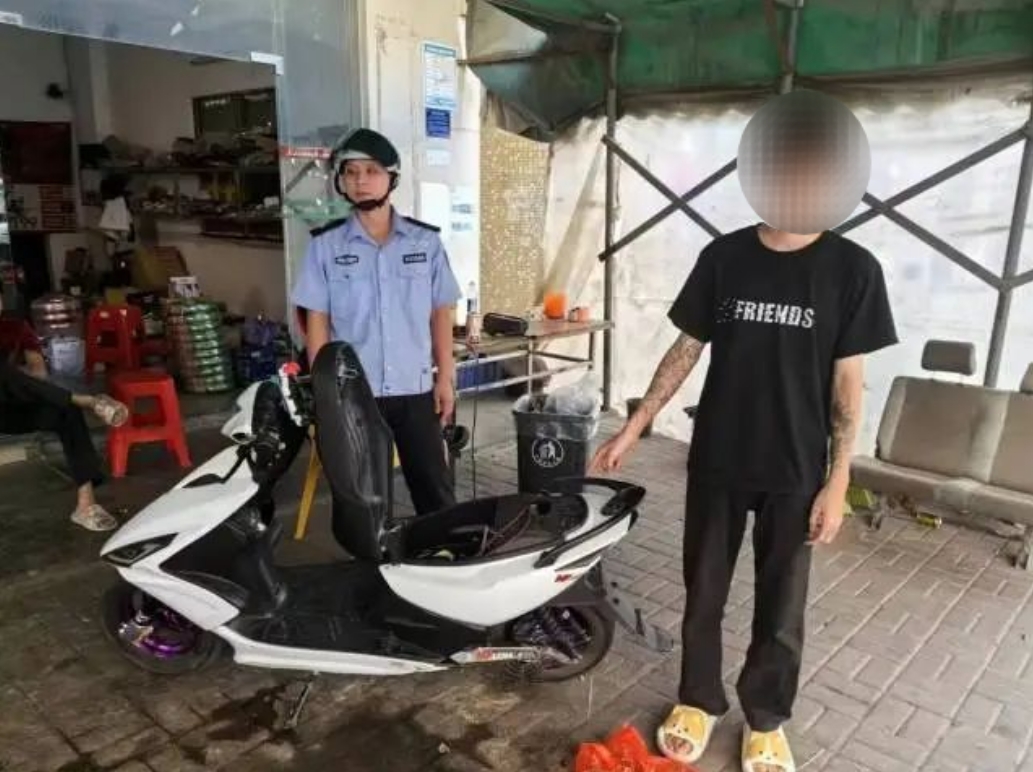 10月8日17時(shí)許,民警在視頻巡查中,發(fā)現(xiàn)一輛疑似非法改裝的電動(dòng)車(chē)進(jìn)入了一家電動(dòng)車(chē)銷(xiāo)售店。民警迅速行動(dòng)對(duì)該電動(dòng)車(chē)銷(xiāo)售店進(jìn)行突擊檢查。