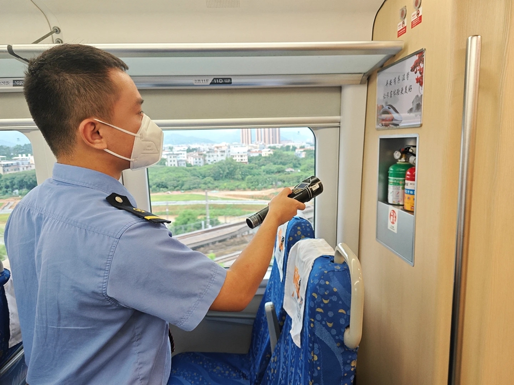 丈夫劉明森是廣州動車段惠州動車所的一名動車組隨車機械師。在動車組上值乘需要隨時檢查列車運行狀態(tài),發(fā)現問題及時解決。工作中,劉明森不放過任何一個細節(jié),為城際動車平穩(wěn)運行提供默默奉獻!懊刻煸谲嚿蟻砘匮惨暀z查超2萬步,有時還幫旅客撿到遺失物品,用自己的努力換來旅客放心、滿意的乘車體驗,我覺得這非常值!眲⒚魃f。