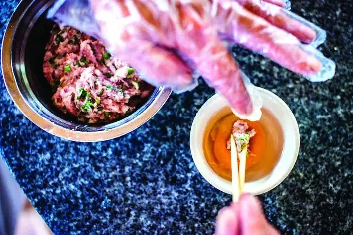 惠州的釀春,是春天里的一道佳肴。所謂釀春,就是把肉餡細心地塞進雞蛋或者鴨蛋黃里,再用春天清香微苦的枸杞梗煮湯,把釀好的“春”放進去,慢慢烹煮,養(yǎng)熟成一道菜肴。