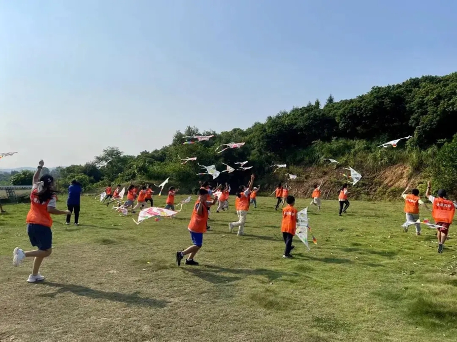 孩子們在東道羽茶里王國放風(fēng)箏。