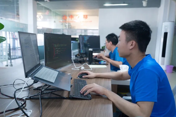 走進(jìn)立冠科技,程序員忙著寫(xiě)各種代碼,給系統(tǒng)升級(jí)迭代,硬件設(shè)計(jì)師正在設(shè)計(jì)最新的智能吊掛系統(tǒng)零部件圖紙,研發(fā)部門正在調(diào)試最新的產(chǎn)線平板顯示器設(shè)備,一派繁忙景象,整個(gè)公司一半以上都是研發(fā)技術(shù)工程師。