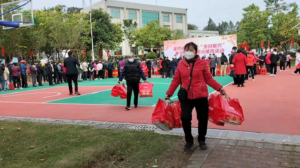 “我宣布,現(xiàn)在開始分豬肉。”1月17日,隨著一聲話下,仲愷高新區(qū)潼僑鎮(zhèn)金星村黨群服務(wù)中心的籃球場(chǎng)上人頭攢動(dòng)、熱鬧非凡,藏在鄉(xiāng)村里的年味愈加濃厚。這是金星村新年分豬肉的日子。