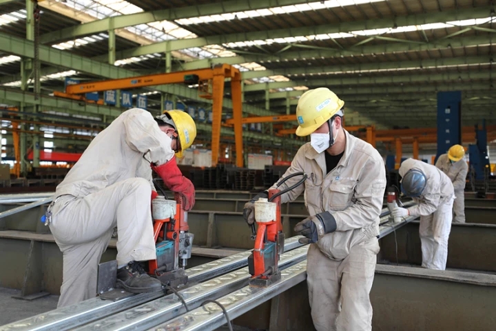 惠州堅(jiān)持制造業(yè)當(dāng)家。這是中建鋼構(gòu)公司車(chē)間工人在忙碌生產(chǎn)。