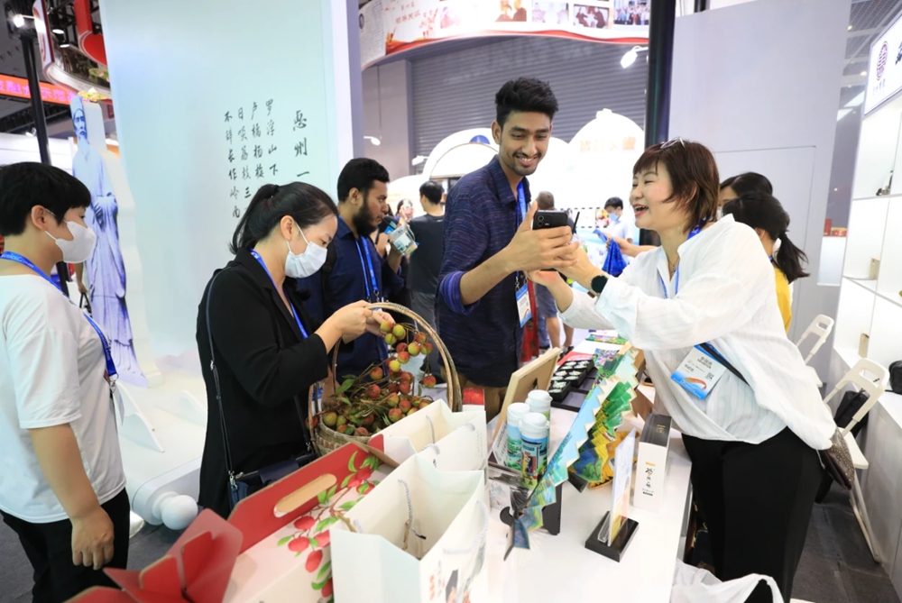 本屆文博會,惠州館也迎來了不少國外客商,來自孟加拉國的麥克品嘗了地道的鎮(zhèn)隆荔枝。他告訴記者,惠州人非常熱情,通過美食和現(xiàn)場圖片感受到了惠州魅力,希望有機會能到惠州旅游。