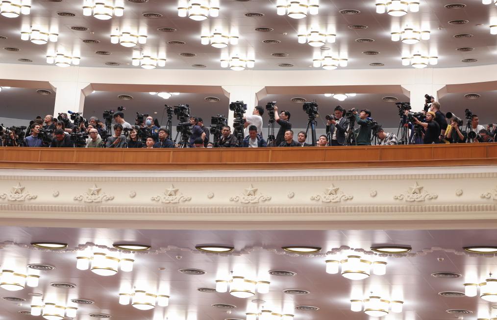 3月4日,中國人民政治協(xié)商會議第十四屆全國委員會第二次會議在北京人民大會堂開幕。這是記者在會場拍攝。