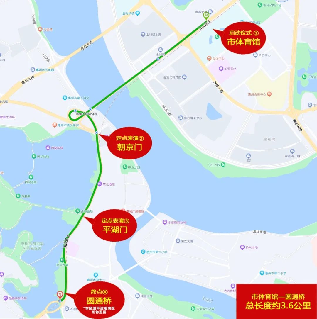 惠州市體育館起、經(jīng)過惠州大橋