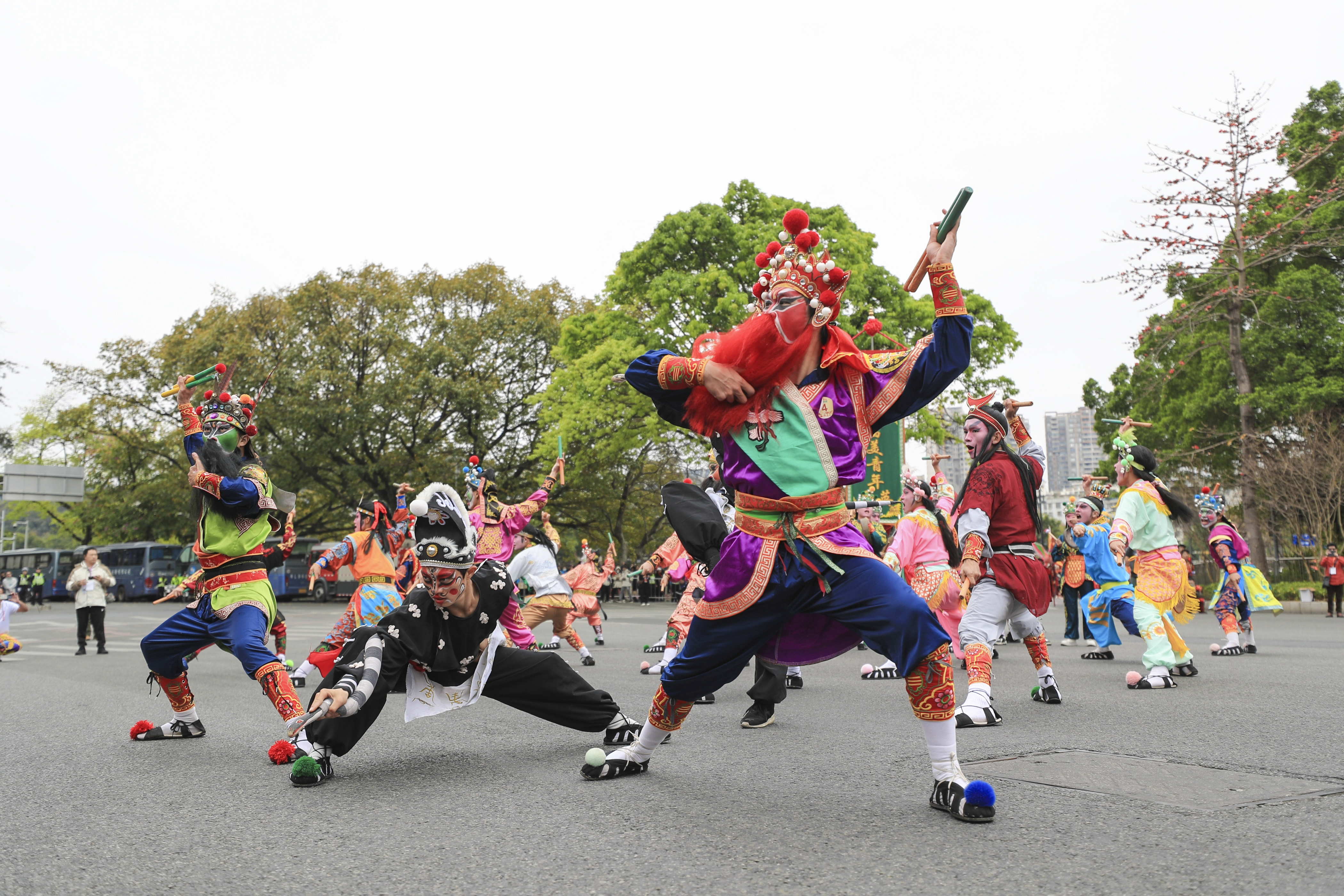 近年非;鸬膹V東潮汕地區(qū)的英歌舞,也出現(xiàn)在“舞動中國龍”——龍舞大巡游活動現(xiàn)場,點燃了觀眾的熱情。