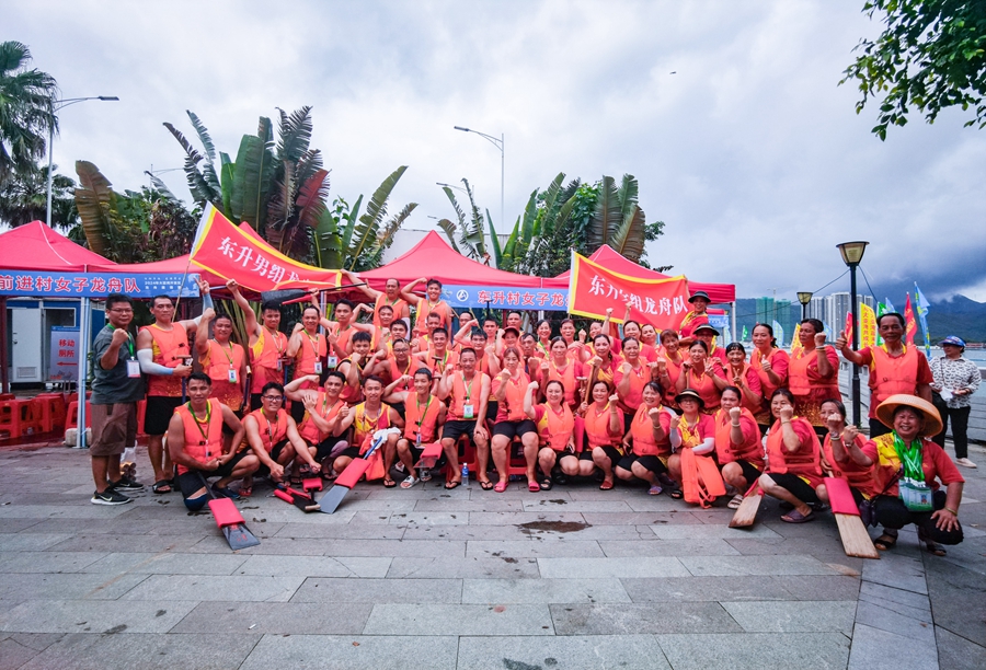 對漁民來說,海上駕舟是他們的謀生技能,劃龍舟正是一展身手的好機(jī)會(huì)。這段時(shí)間里,前進(jìn)村劃龍舟氛圍濃厚,參賽隊(duì)伍里既有夫妻檔也有父子兵,村民們還自發(fā)組成了強(qiáng)大的“后援團(tuán)”,經(jīng)常到碼頭為訓(xùn)練中的隊(duì)員加油鼓勁送補(bǔ)給。“前進(jìn)村是一座傳統(tǒng)漁村,劃龍舟對漁民來說意義非凡,接下來我們希望繼續(xù)挖掘村里的龍舟文化,推進(jìn)文化與旅游深度融合。”前進(jìn)村干部蘇錦發(fā)說。