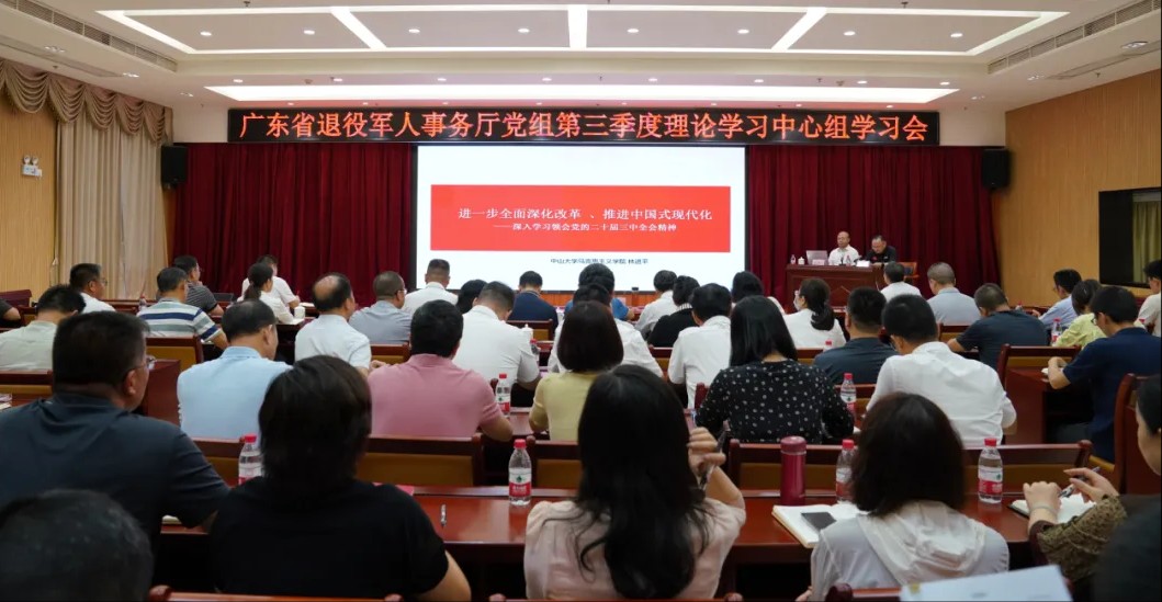 9月20日上午,廣東省退役軍人事務(wù)廳以理論學(xué)習(xí)中心組學(xué)習(xí)擴(kuò)大會(huì)的形式,邀請省委學(xué)習(xí)貫徹黨的二十屆三中全會(huì)精神宣講團(tuán)成員、中山大學(xué)馬克思主義學(xué)院院長林進(jìn)平作宣講輔導(dǎo),深入學(xué)習(xí)領(lǐng)會(huì)黨的二十屆三中全會(huì)精神,凝聚深化我省退役軍人事務(wù)領(lǐng)域改革的強(qiáng)大動(dòng)力。廳黨組書記、廳長王創(chuàng)主持會(huì)議并講話。