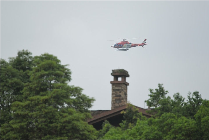 這是2024年6月20日在成都都江堰市青城山起降點拍攝的參與驗證飛行的載人直升機。新華社記者 胥冰潔 攝