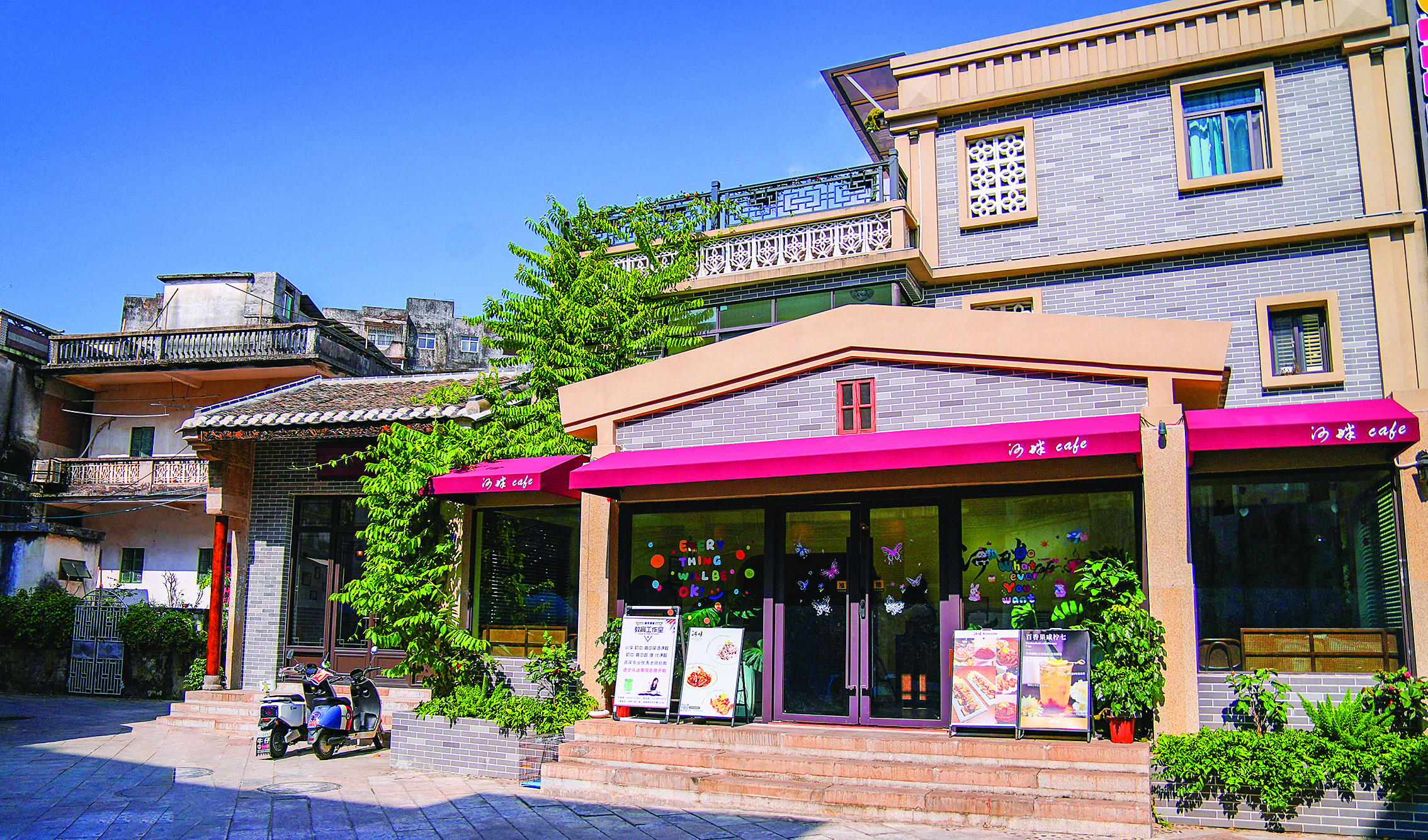 來到惠州惠陽淡水老街的入口,轉(zhuǎn)個(gè)彎就能遇到一棟南洋復(fù)古風(fēng)的小洋樓,旁邊還有一個(gè)古色古香的小院,因?yàn)榭拷优希昝〉靡脖容^接地氣:“河畔cafe”“河畔小院”。