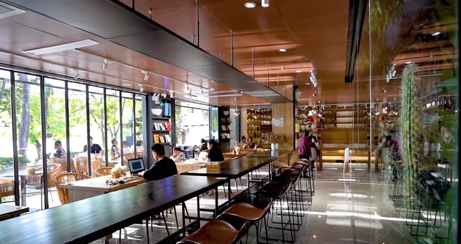 匯聚于此的惠州老字號(hào)餐飲品牌也乘街區(qū)升級(jí)改造的東風(fēng),將檔口升級(jí)成三層帶落地玻璃窗的“文藝店”,面向年輕消費(fèi)者講好惠州美食故事。新進(jìn)駐的文旅團(tuán)隊(duì),更是讓街區(qū)成為年輕人的聚集地。在精品餐廳“五合院”,年輕人肆意地享受咖啡與閱讀時(shí)光。在愛(ài)樹(shù)·觀湖書(shū)院,游客透過(guò)落地窗180度觀賞全景湖光,在日出日落間感受時(shí)光流逝。在文創(chuàng)店里,以“祝枝山”為主題的文創(chuàng)產(chǎn)品琳瑯滿目。