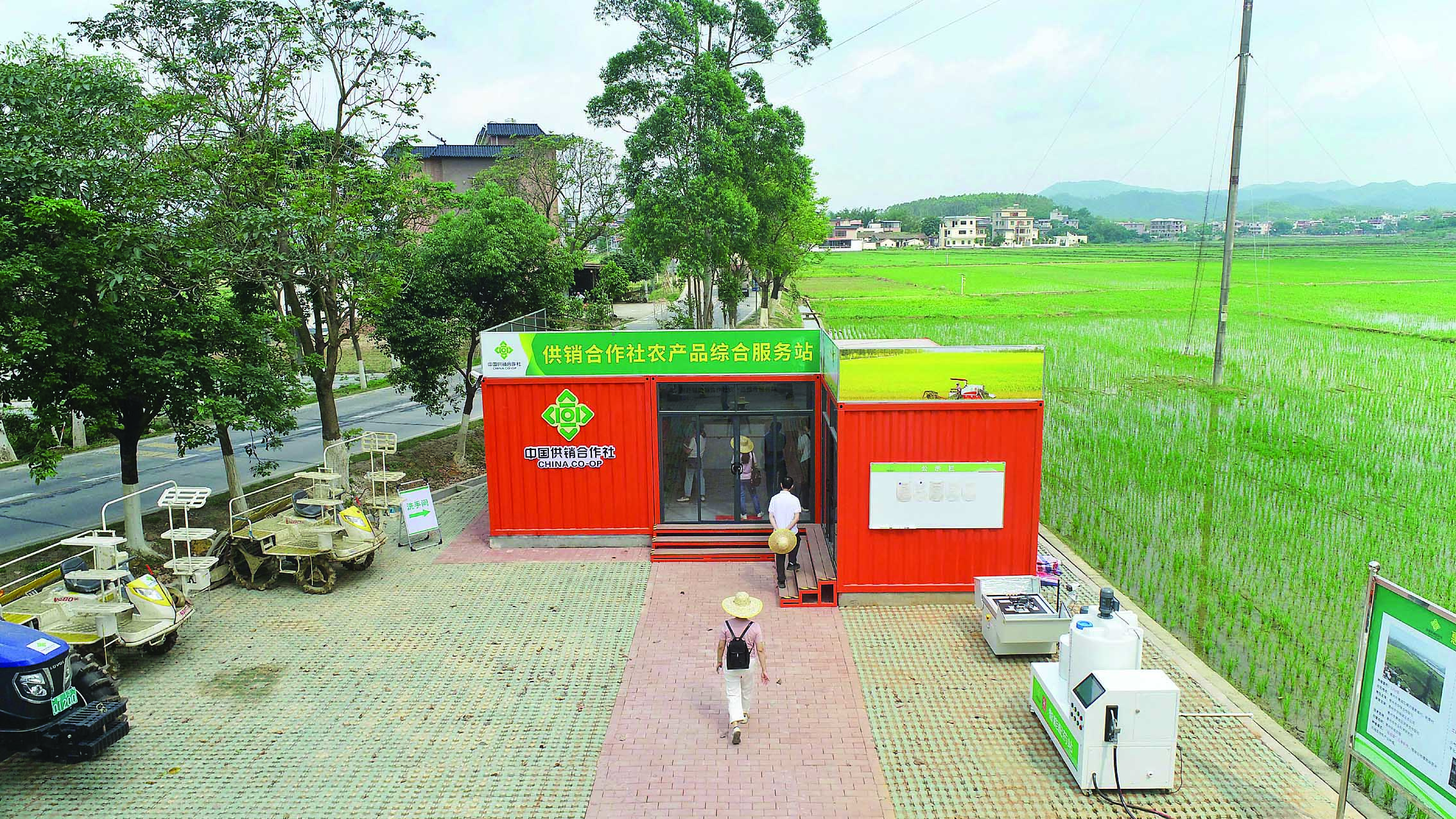 設在稻田邊上的橫瀝鎮(zhèn)供銷合作社農(nóng)產(chǎn)品綜合服務站。 惠州日報記者楊建業(yè) 攝