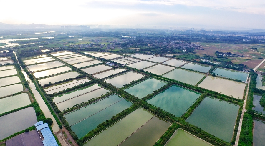 財(cái)興實(shí)業(yè)擁有4000多畝養(yǎng)殖基地;葜萑?qǐng)?bào)記者湯渝杭 攝